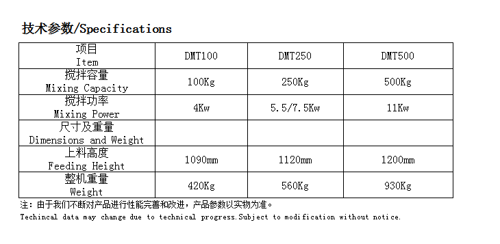 DMT盤式攪拌機它的性能特點: